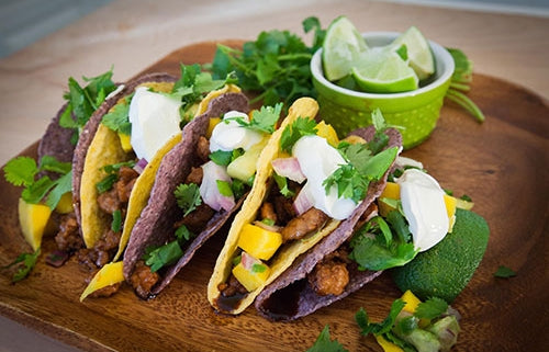 Spoon the pork mixture into the taco shells. Drizzle a little of the extra sauce over the pork.